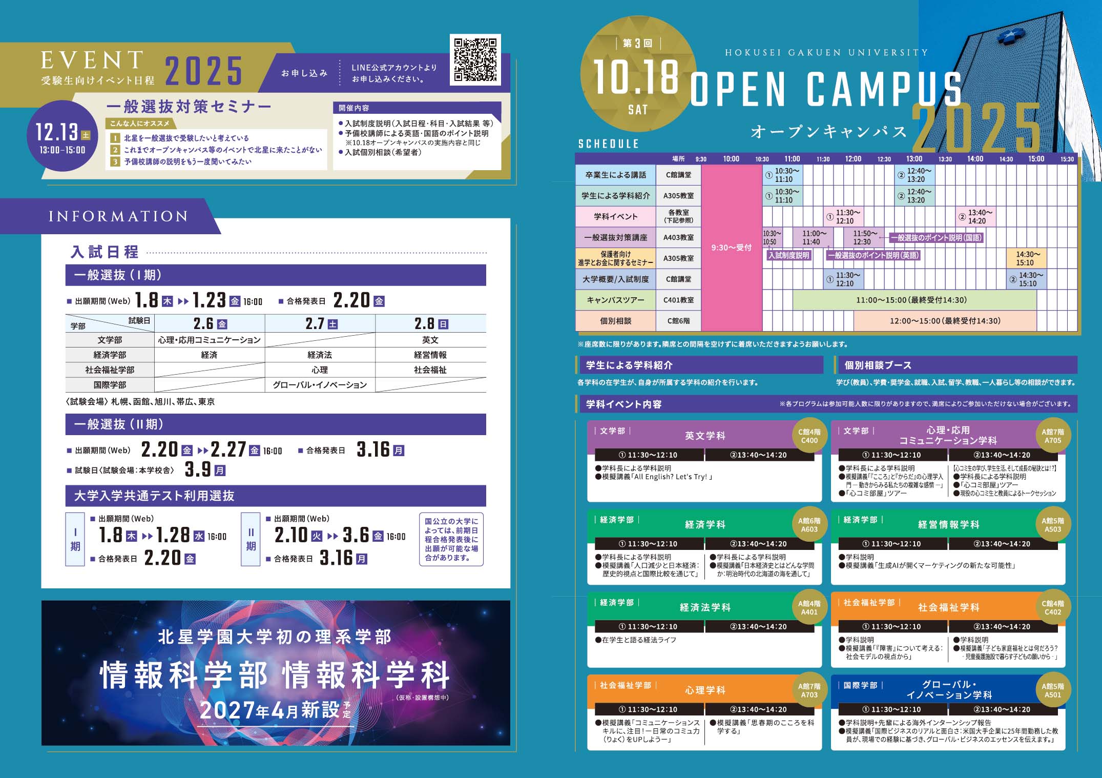 ※『学科イベント⓵、⓶』は学科によって異なる内容を実施する場合があります。必ずリーフレットをご確認ください。