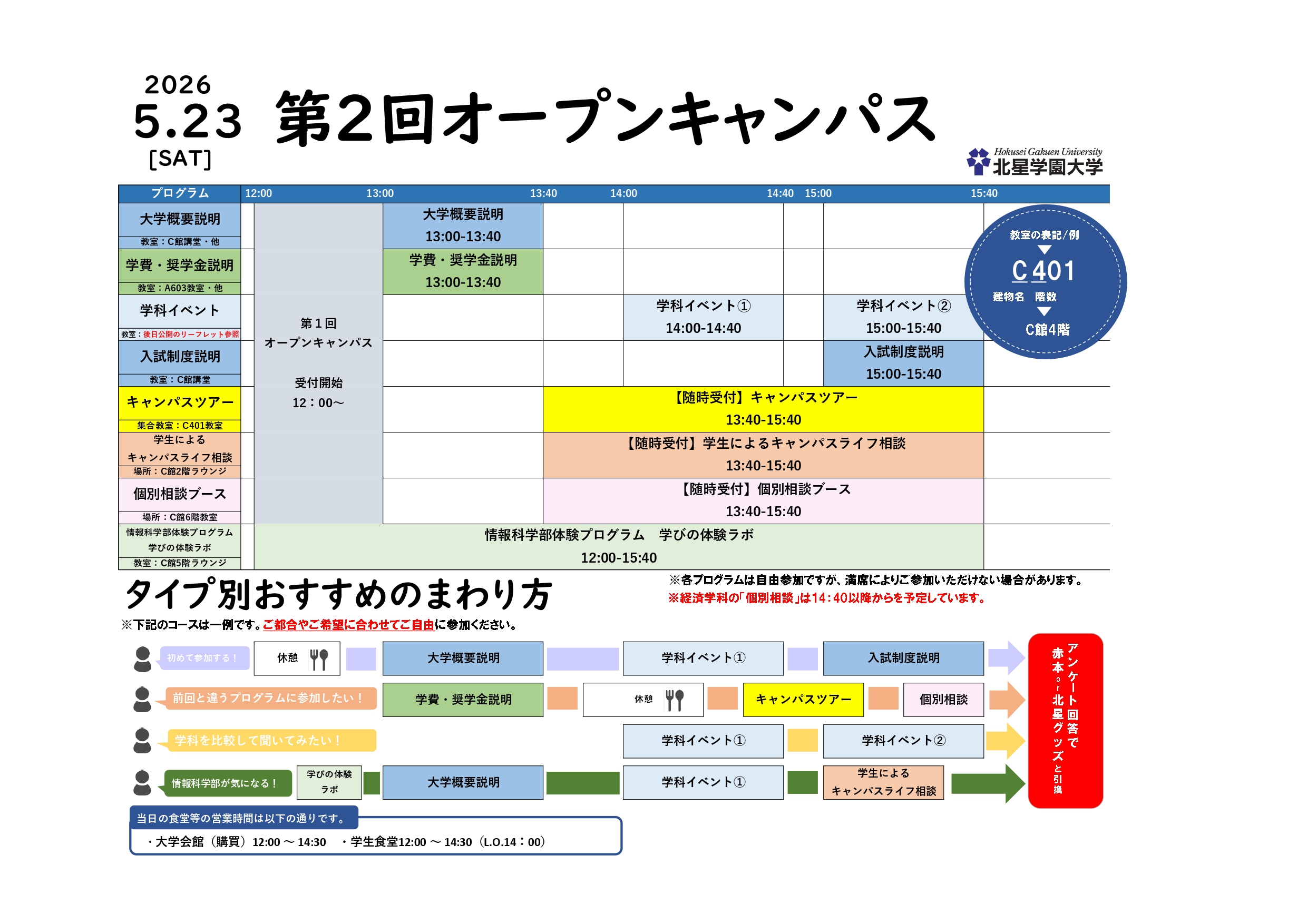 ・大学会館(購買) 12:00~14:30