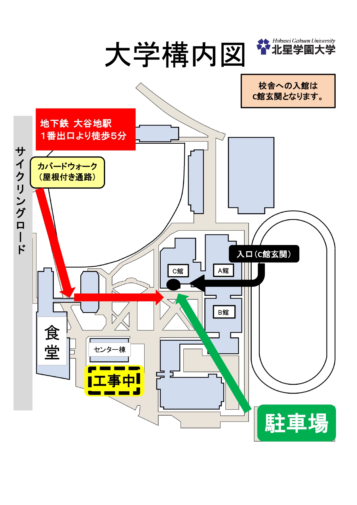 学生スタッフと30分程度で北星の施設を